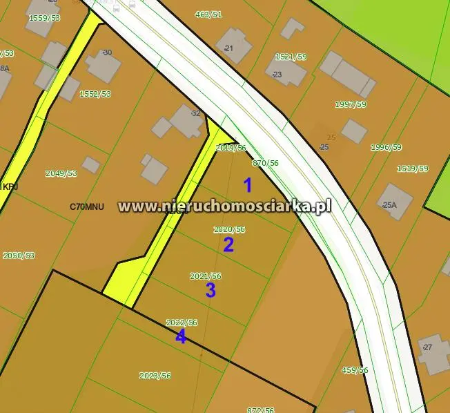Nieruchomości leżą na terenie zabudowy mieszkaniowej jednorodzinnej.
